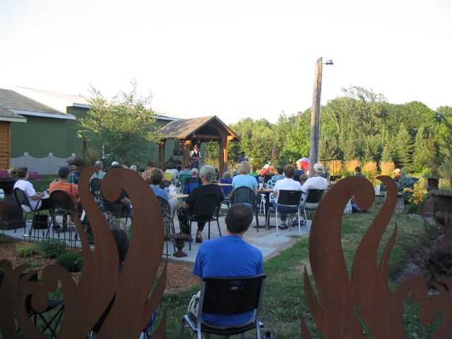 A blue shirted man named Lou watches the show from the back row with the flames of Iron Hell licking at him.