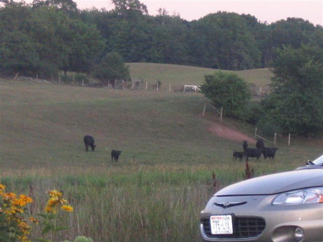 In this photo, the crowd seems to have turned into cows, run to a nearby field, and begun to eat grass. But it is not so. These are actual cows. The cows were fascinated by the odd sounds and responded in kind.